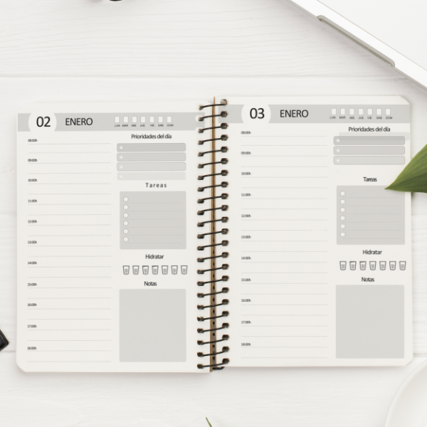 -Agenda 1 dia por pagina con horarios de 8 a 18hs.